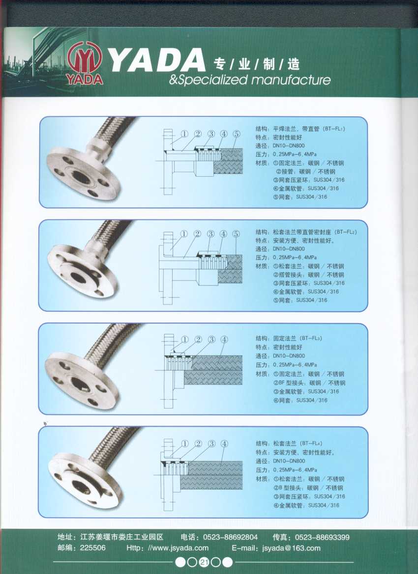秉天時 籍地利 仰人和 虔誠一個永恒的理念,創(chuàng)新永續(xù).百諾不如一信,亞達人堅持以信為本,視客戶如同上帝,把對信譽的追求,體現在嚴格的質量控制和完善的客戶服務上,讓客戶百分之百滿意是亞達人不變的信念。 本廠系ISO9001質量認證企業、計量合格企業。本廠專業致力于生產不銹鋼金屬波紋軟管、超高壓、高壓膠管、波紋管補償器(膨脹節(jié))、立式、臥式、冷卻器。本廠產品具有承受壓力高、彎曲半徑小、抗疲勞性能強、使用壽命長等特點。廣泛應用于電力、石化、冶金、水泥建材、工程機械、礦山及液壓系統。產品暢銷全國各地。 今日亞達之成功源自諸多客戶的厚愛,明天的輝煌更離不開您對我的支持與信賴。查看更多>>